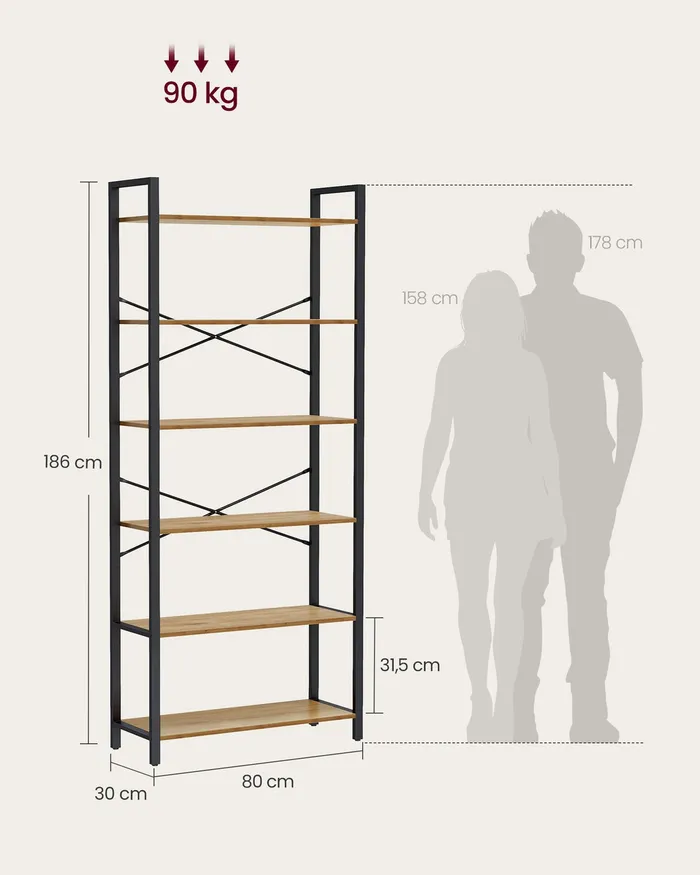 Книжна шафа 6 полиць світло-коричнева 186 см.