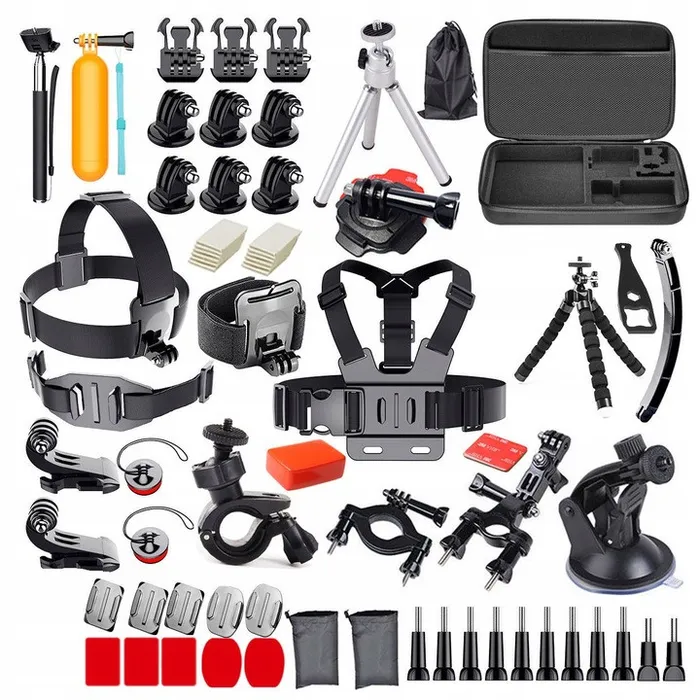 ➡ Набір включає, серед іншого: ручки, ремінці, гвинти. Кріплення дозволяють встановити камеру на шолом, вітрила, велосипед, автомобіль або інші предмети. Ремінці та гвинти дозволяють прикріпити камеру до грудей або інших поверхонь.
