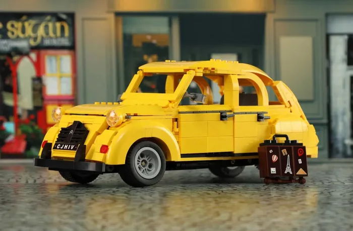 Набір складається з 1238 елементів і дозволяє самостійно зібрати дивовижну класику - Citroen 2CV в масштабі 1:12 за ліцензією. Автомобіль створено з особливою увагою до деталей , які забезпечать неймовірне задоволення. Оснащений 4 гумовими колесами , які дозволяють пересуватися по різних поверхнях. Автомобіль має жовтий кузов з чорними елементами. Автомобіль має круглий дах , поворотне кермо, напівзакриті задні колеса, дзеркала в ретро-стилі та характерні круглі фари , які роблять 2CV впізнаваним. Має відкриваються двері, капот і багажник, а також відкривається валізу , яка входить в комплект. Він рухається вперед і назад вручну . Додатково в комплект входить штатив , фотоапарат і ліцензійна табличка , яка підходить до автомобіля. Позування для фотографій на камеру в стилі ретро характерно для романтичного стилю французької вулиці. Є можливість придбати комплект дистанційного керування, завдяки якому автомобіль може рухатися вперед, назад, вправо та вліво за допомогою пульта.