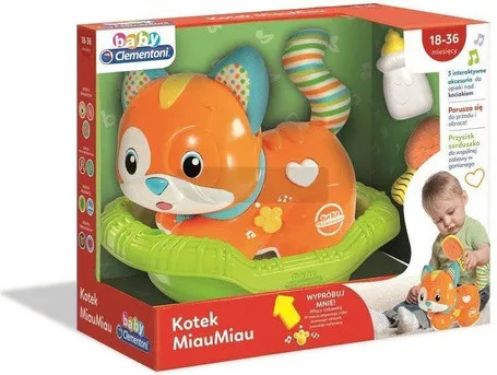 Кошеня рухається вперед-назад, заохочуючи вашу дитину долучитися до розваги. Воно розпізнає, коли ваша дитина бере його на руки та кладе в ліжко, а також активує нічний режим. Воно розпізнає, коли його обіймають та піклуються про нього. Воно муркоче, коли його розчісують, і коли пляшечка торкається його губ. Воно також радіє, коли настає час їсти. Воно стимулює мовні та уявні навички, а також покращує розвиток ручної роботи та дрібної моторики. Його вушка та хвіст виготовлені з м’якого матеріалу.