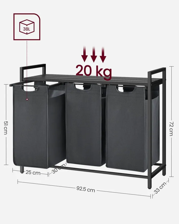 Кошик пральний 3 камери x 38l темно-сірий