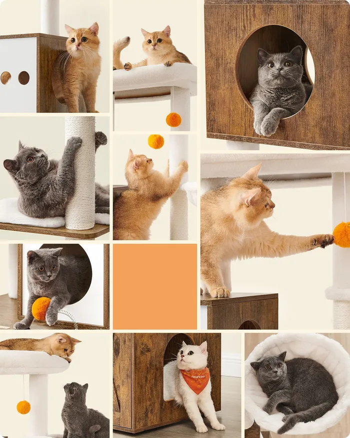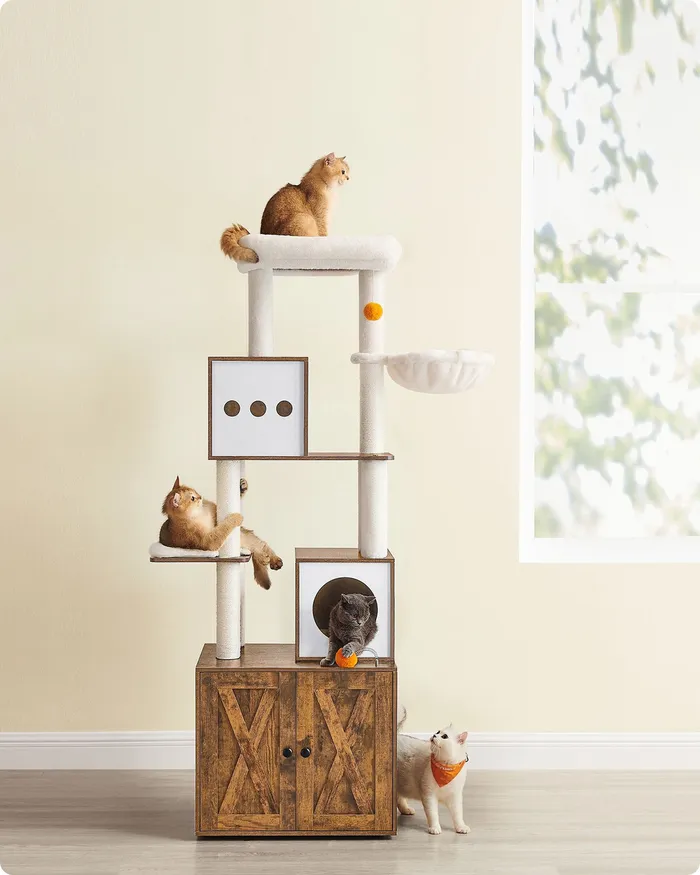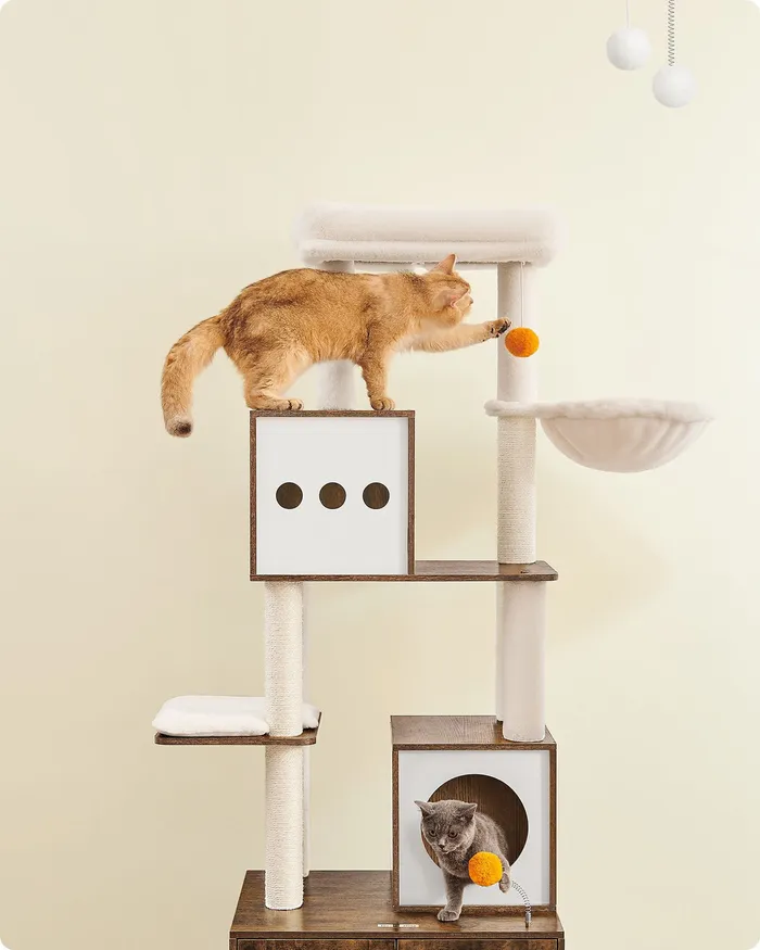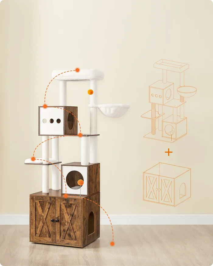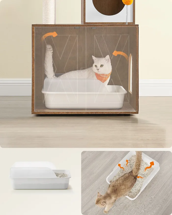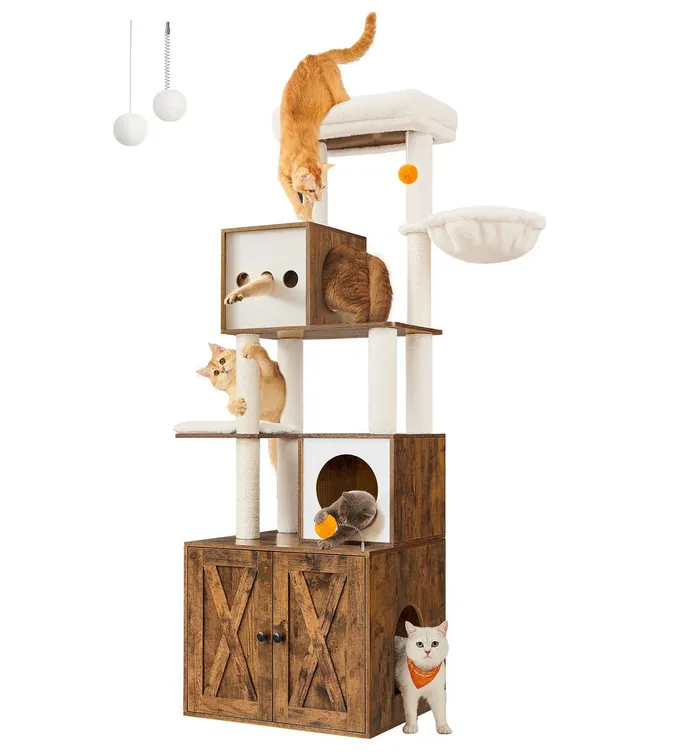 Котяча котяча дерево з коробкою з високим сміттям 2 в 1
