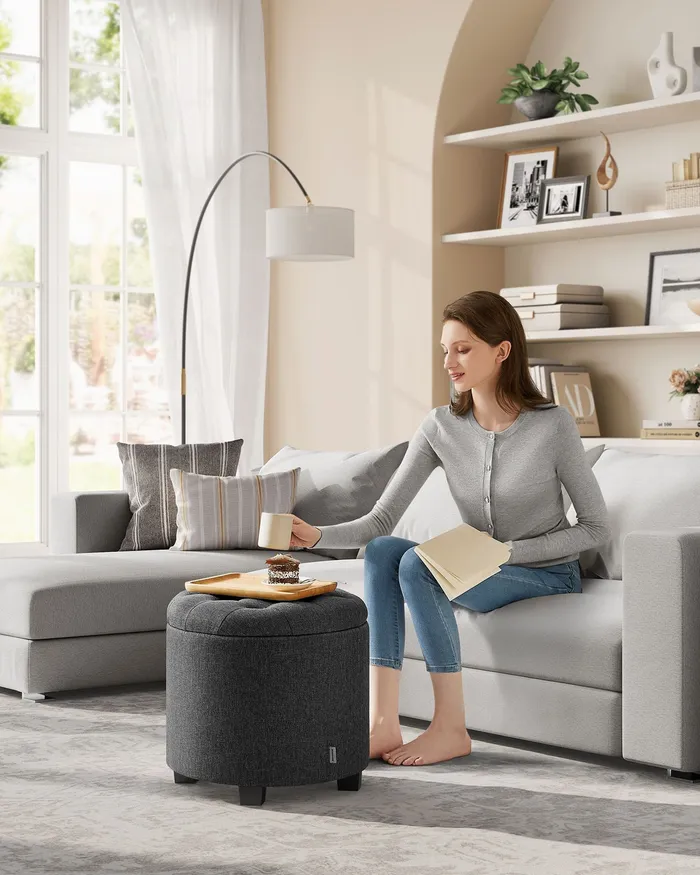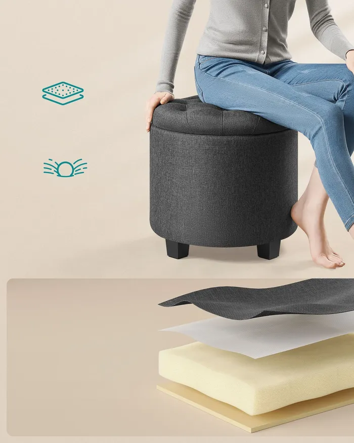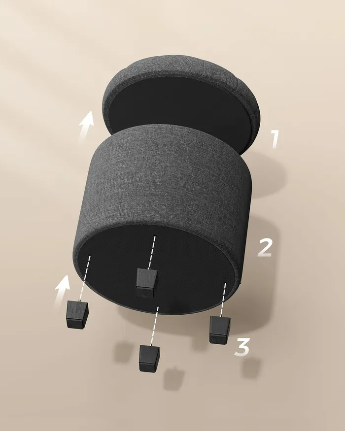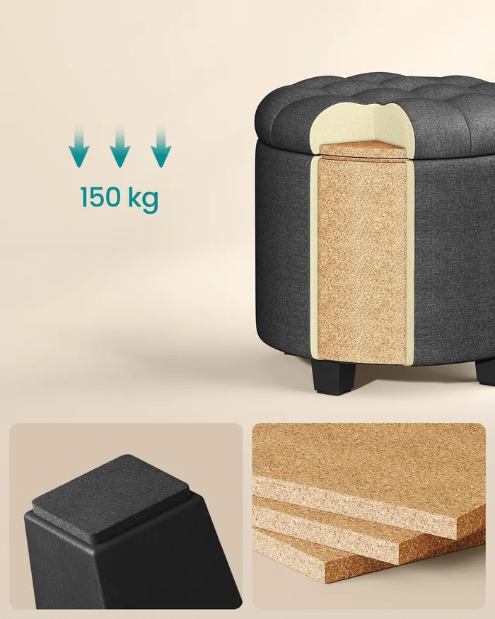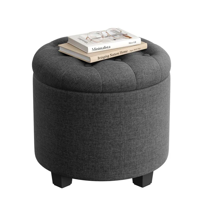Круглий сірий пуф із відсіком для зберігання 22 л.