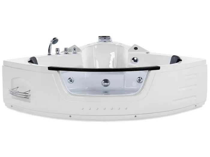 Відпочиньте після важкого дня в цій кутовій гідромасажній ванні з водоспадом. Комфортний відпочинок забезпечують зручні підголівники та велика ванна, а барвисті світлодіодні світильники допоможуть розслабитися. Біла акрилова конструкція забезпечує довговічність і гарний вигляд протягом тривалого часу.