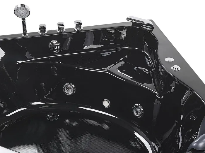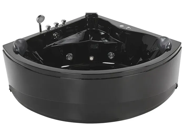 Кутова світлодіодна ванна з гідромасажем Baracoa 140 x 140 см чорна Стильна чорна ванна з гідромасажем
