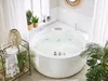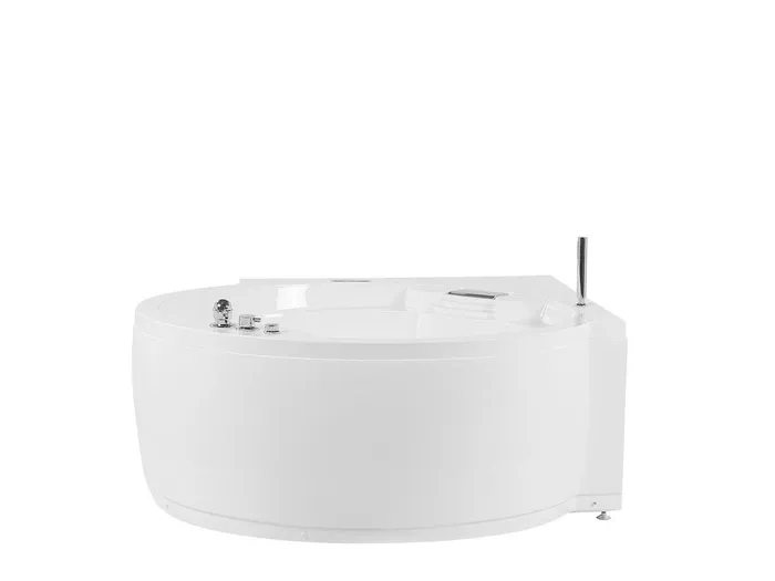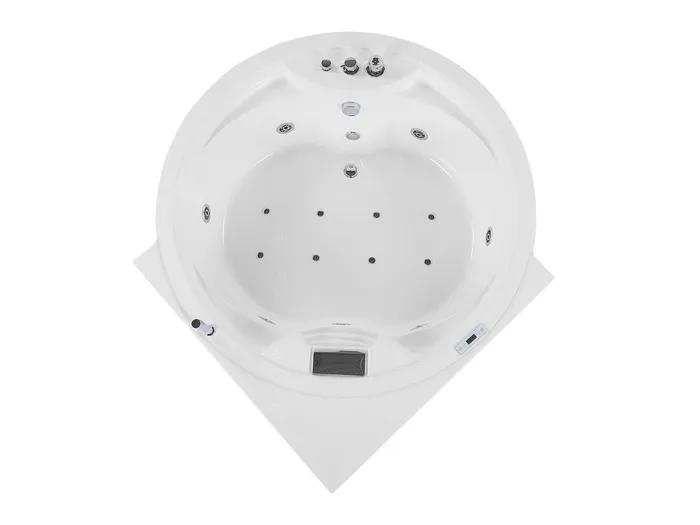 Джакузі з круглим кутом для повного розслаблення. Елегантний дизайн, який пасуватиме до будь-якого інтер'єру ванної кімнати, виготовлений із глянцевого білого санітарного акрилу, що забезпечує розкішну гладку поверхню. Він пропонує достатньо місця для двох осіб і має кілька індивідуально регульованих струменевих форсунок для ідеального водного масажу. Світлодіодні ліхтарі освітлюють воду яскравими кольорами, допомагаючи розслабитися. Усіма функціями можна легко керувати зі зручної цифрової панелі.