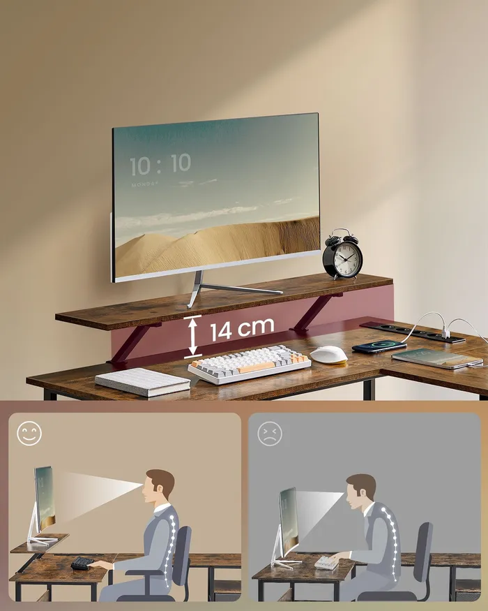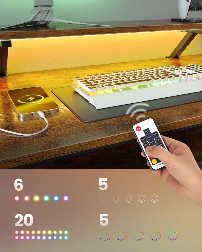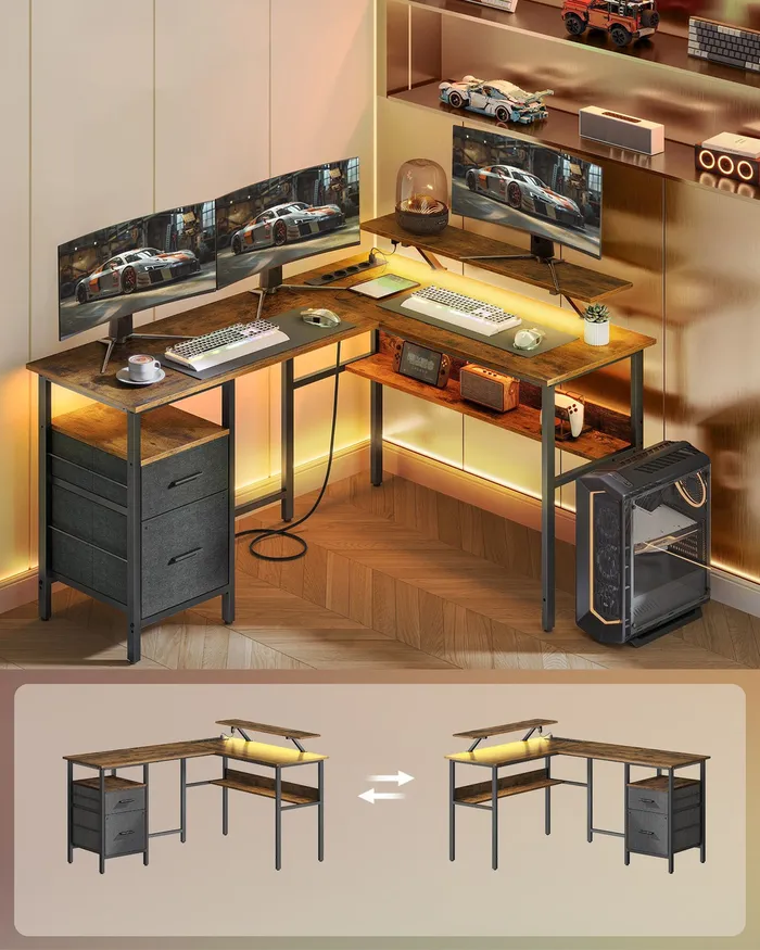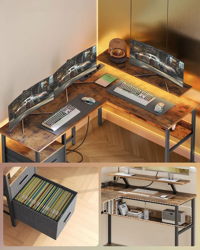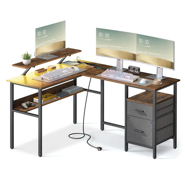Кутовий стіл зі світлодіодним освітленням коричневий