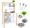 Змішувач із ручкою та знімною раковиноюЦей набір сприяє розвитку дрібної моторики, координації рук, уяви та розв'язання проблем. Кухня приємна на дотик, гострих країв немає. Вся річ зроблена з дерева (невеликі пластикові елементи: ручки, кран).