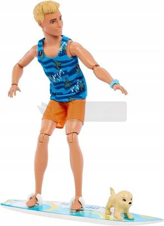 Лялька Барбі Кен Серфер Малібу, дошка для серфінгу + собака HPT50