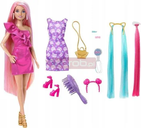 Лялька BARBIE TOTALLY HAIR DOLL з довгим волоссям + сукня + аксесуари HKT96