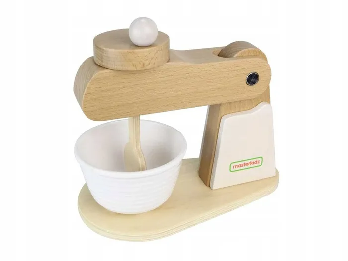 Розвиваюча сенсорна іграшка для дітей, настав час готувати смачний торт! Добре, а як це зробити без міксера? Мама не позичить нам справжню, так? Не хвилюйтесь – дерев'яний міксер для дітей Masterkidz вирішить цю проблему.