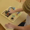 - Іграшка у вигляді дерев'яної дошки має два магніти з позначеними полюсами, прозорий контейнер із залізною тирсою та компас із малюнком земної кулі та її магнітних ліній. Завдяки всім цим елементам гра ніколи не набридне.