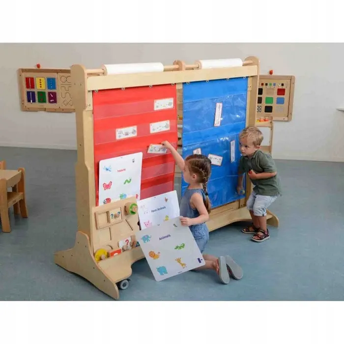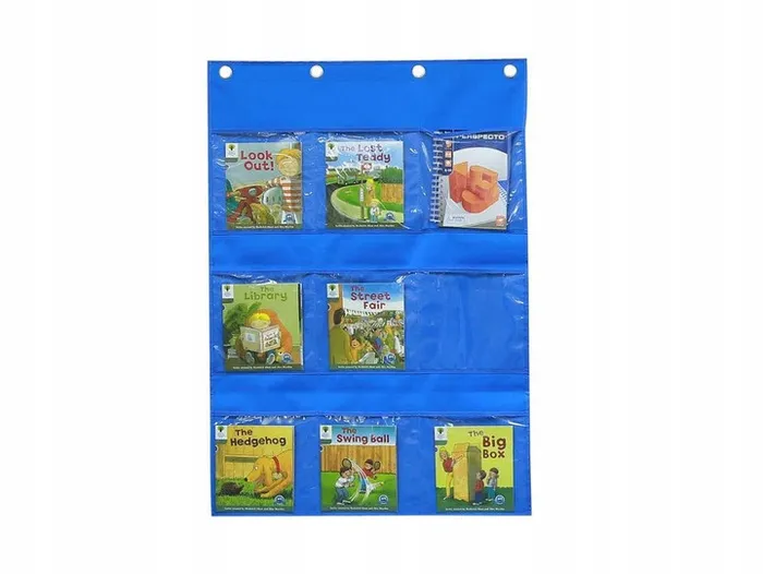 Аркуш матеріалу від Masterkidz , що містить 3 ряди кишеньок для книг або картинок. Він ідеально підходить для занять у класі, де його можна використовувати для пояснення складних тем . Він також буде корисним як цікавий предмет меблів, на якому будуть відображатися цінні видання - наприклад, у бібліотеці.