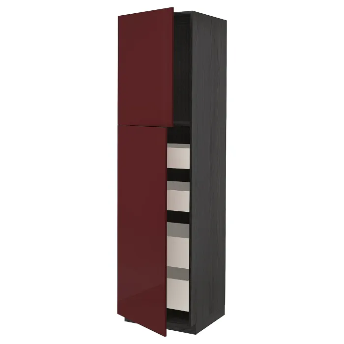 IKEA METOD / MAXIMERA(394.597.90) 2-дверна / 4-ящикова висока шафа, Калларп чорний / глянцевий темно-червоно-коричневий