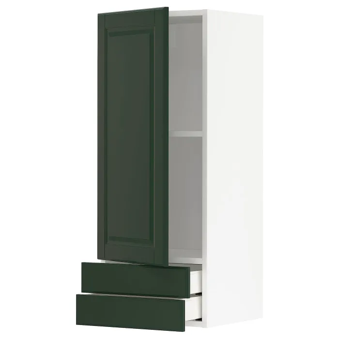 IKEA METOD / MAXIMERA(094.542.04) навісна шафа, двері / 2 ящика, білий / Bodbyn темно-зелений