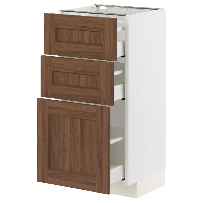IKEA METOD / MAXIMERA(494.750.87) тумба стояча з 3 ящиками, білий Enköping / коричневий горіх