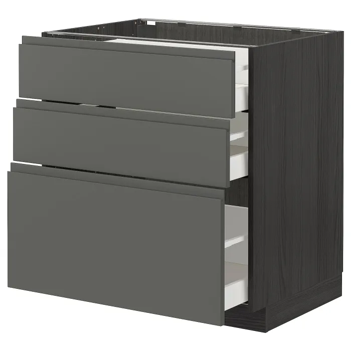 IKEA METOD / MAXIMERA (893.110.13) тумба стояча з 3 ящиками, чорний / Voxtorp темно-сірий