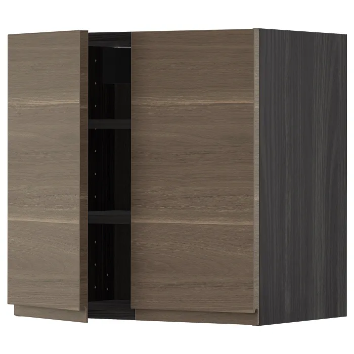 IKEA METOD (494.556.59) навісна шафа з полицями / 2 двер, чорний / Voxtorp горіх