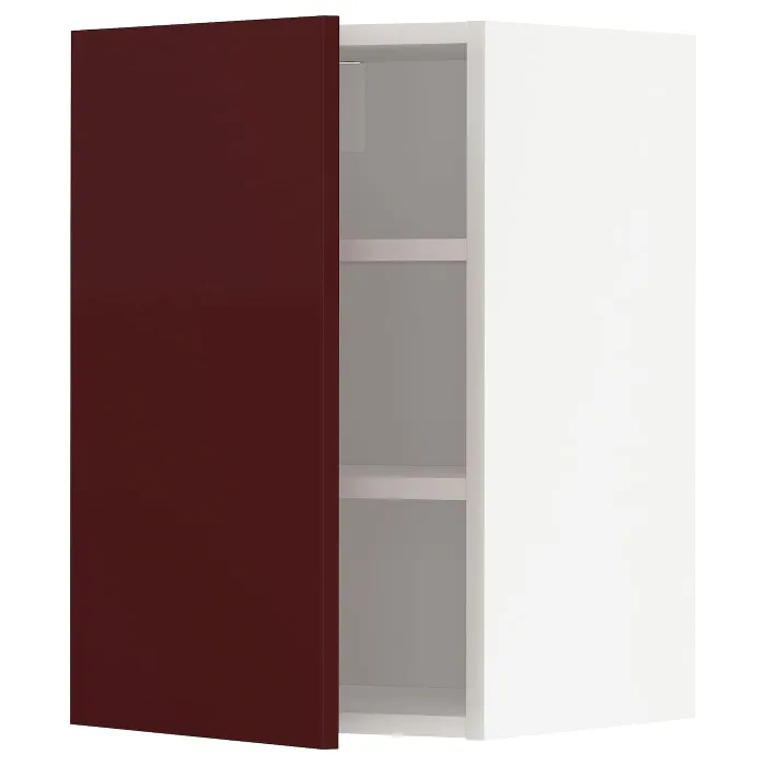 IKEA METOD(994.595.46) навісна шафа з полицями, Kallarp білий / темний червоно-коричневий глянець