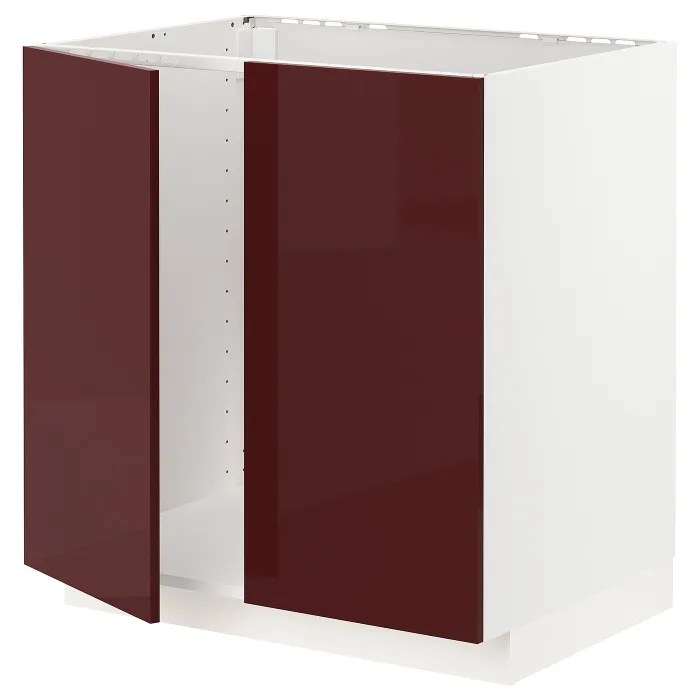 IKEA METOD(894.597.83) перша раковина / 2 двері, Kallarp білий / темний червоно-коричневий глянець