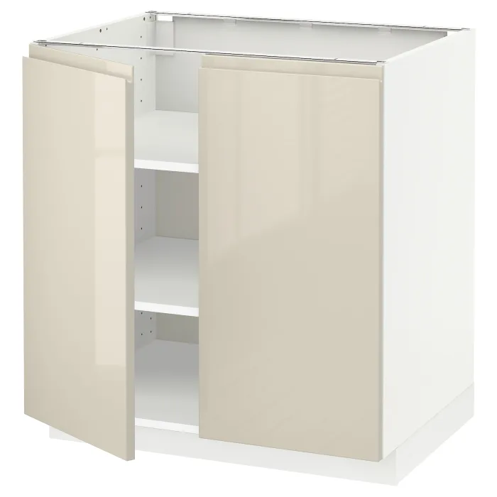 IKEA METOD(694.614.66) stj шафа / полиці / 2 двер, білий / Voxtorp глянцевий світло-бежевий