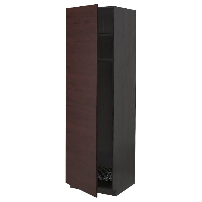 IKEA METOD(294.672.53) висока шафа, полиці / дротяна корзина, чорний Аскерсунд / імітація темно-коричневого попелу