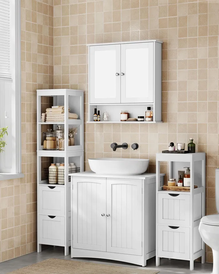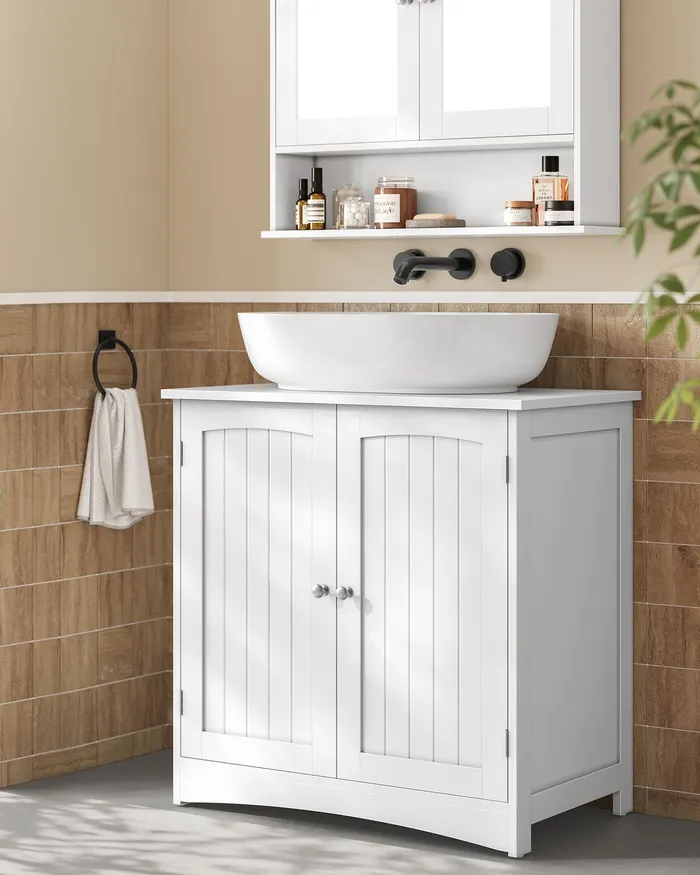 Містка біла шафа під раковиною