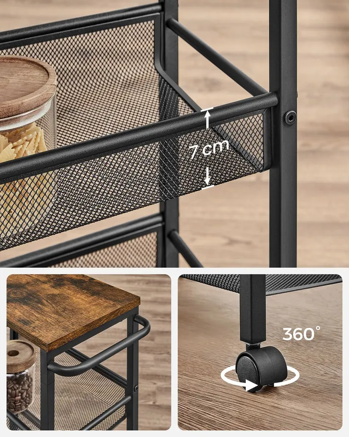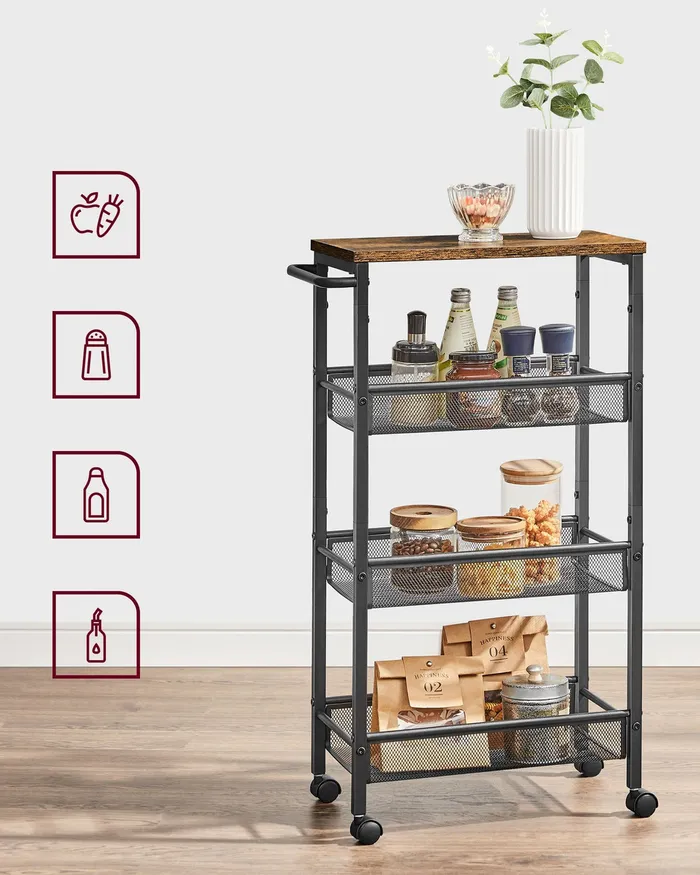 Мобільна вузька кухонна коляска горища
