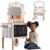 Магазин, Кондитерська, Кафе-морозиво 3в1 – чудовий подарунок для маленьких кондитерів. Набір ідеально підійде дитині, яка хоче зіграти роль продавця чи кондитера. Завдяки цій іграшці ваша дитина відчує себе професійним продавцем солодощів. Іграшка має безліч дрібних аксесуарів, таких як льодяники, морозиво, вафлі та начинки. Додатково в магазині є дошка, де дитина може малювати чи писати ціни чи сьогоднішнє меню. У магазині є полиця, куди можна заховати різні речі. Все розписано нетоксичними фарбами в ніжних тонах, які привертають увагу дитини.