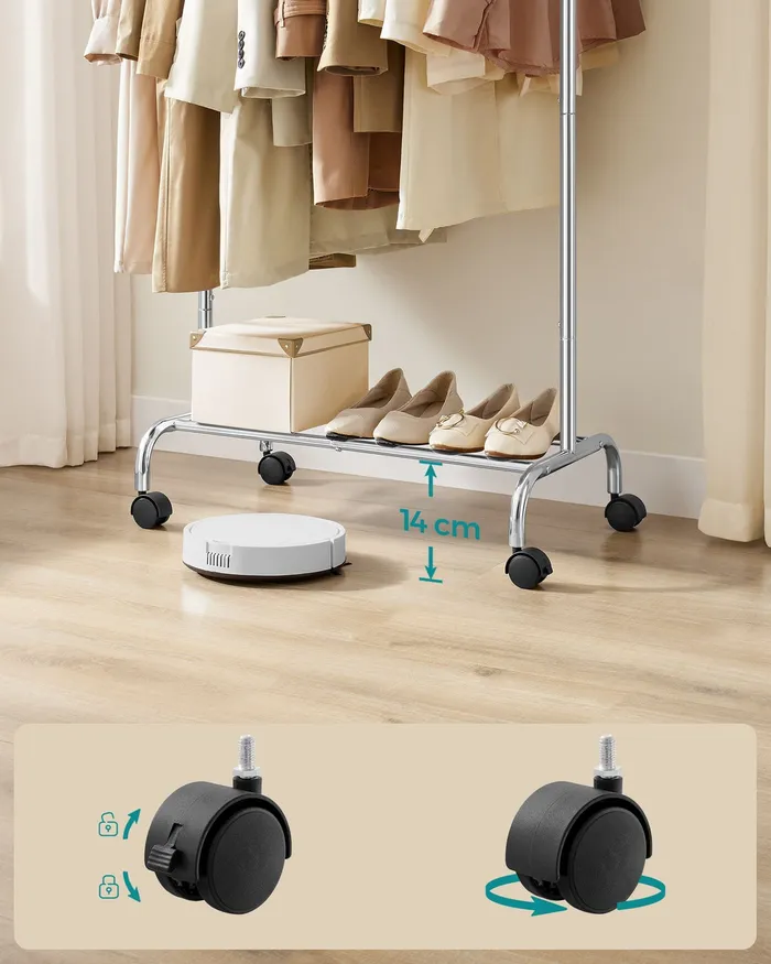 Мобільний вішак для одягу 156 см срібла