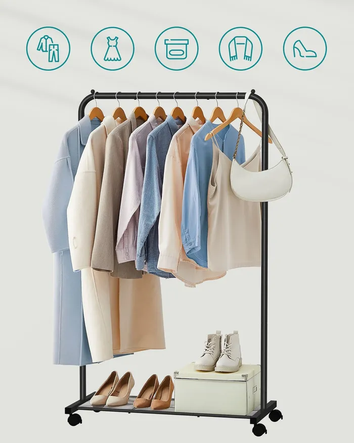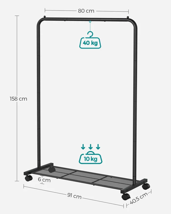 Мобільний вішак для одягу 158 см чорно