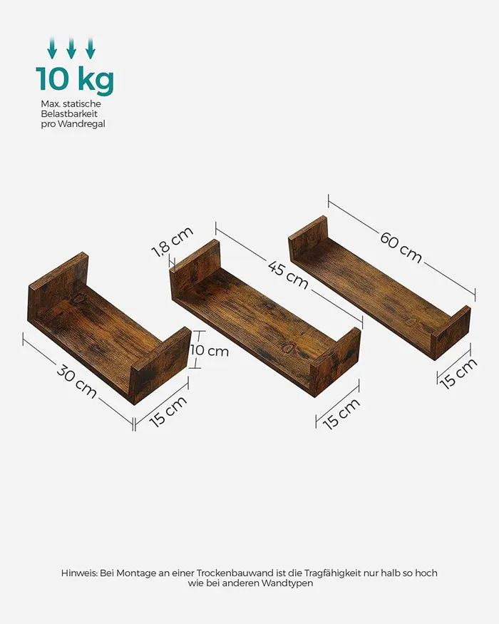 Набір із 3 сільських настінних полиць