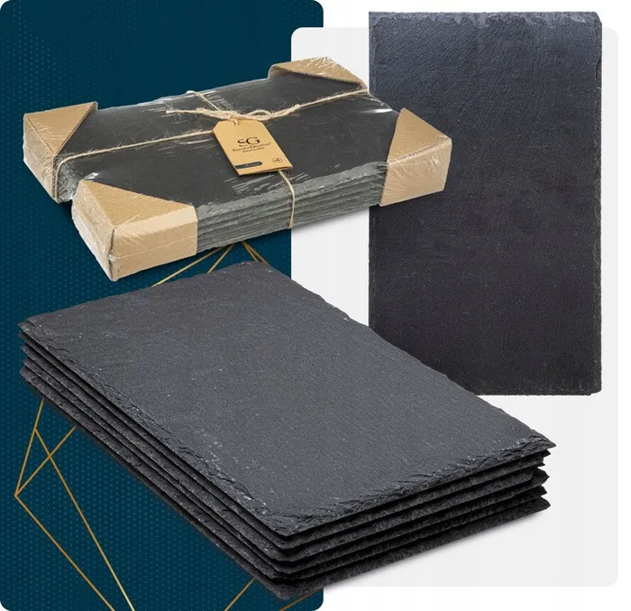 Ідеальний набір для подачі закусок ! Включає шість сланцевих підставок, які допоможуть вам подавати закуски та страви естетично.