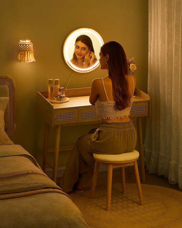 Оббитий стілець для туалетного столу