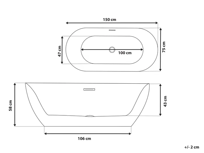 Ця овальна ванна, створена для максимального задоволення від прийняття ванн з піною, задовольнить всі ваші потреби, поєднуючи в собі дивовижний зовнішній вигляд і функціональність. Ця ванна з чудовими заокругленими краями і витонченим силуетом буде творити чудеса як центральний елемент ванної кімнати, збагачуючи ваш інтер'єр гламуром і витонченістю. Виготовлена з армованого акрилу з глянсовим чорним оздобленням, ванна проста в догляді та довговічна.