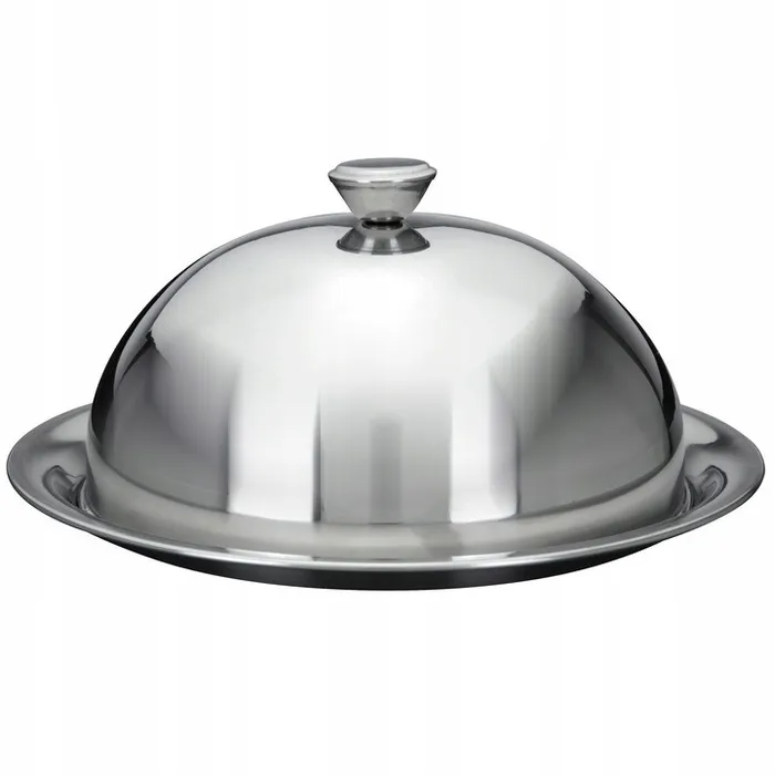 Стильний піднос - тарілка з кришкою, все з нержавіючої сталі матового срібла. Страва виглядає дуже елегантно і надзвичайно практична. Створює оригінальну прикрасу для столового посуду. Винахідливий і вишуканий спосіб подачі страви.