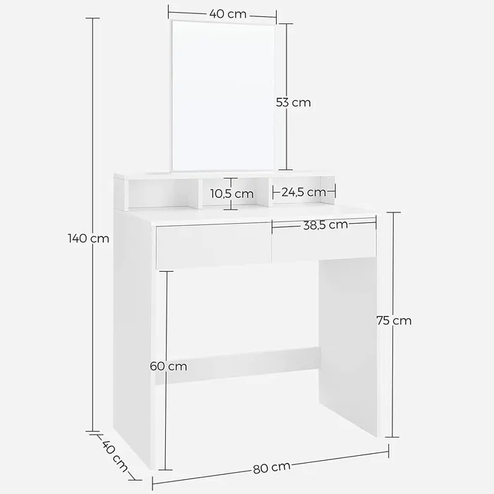 Плюковий столик із дзеркалом білого кольору для макіяжу 80 см гламур