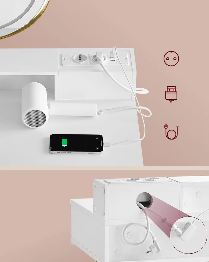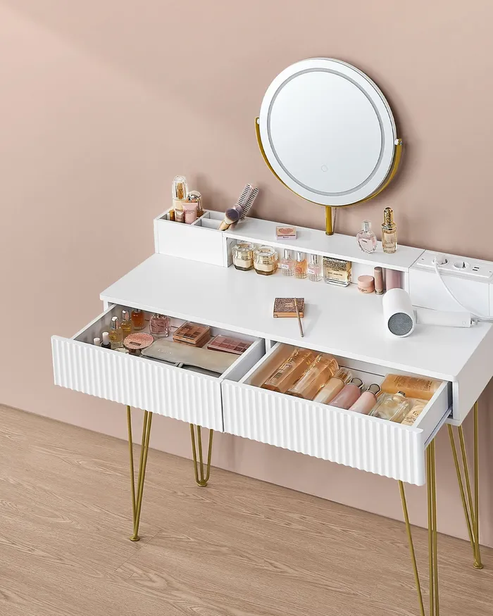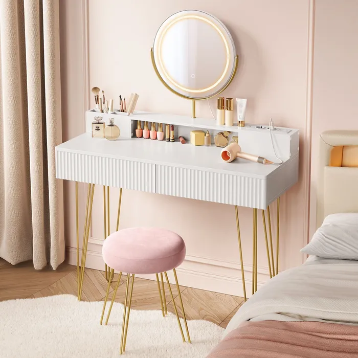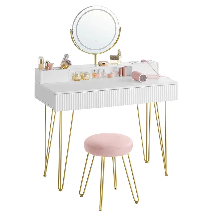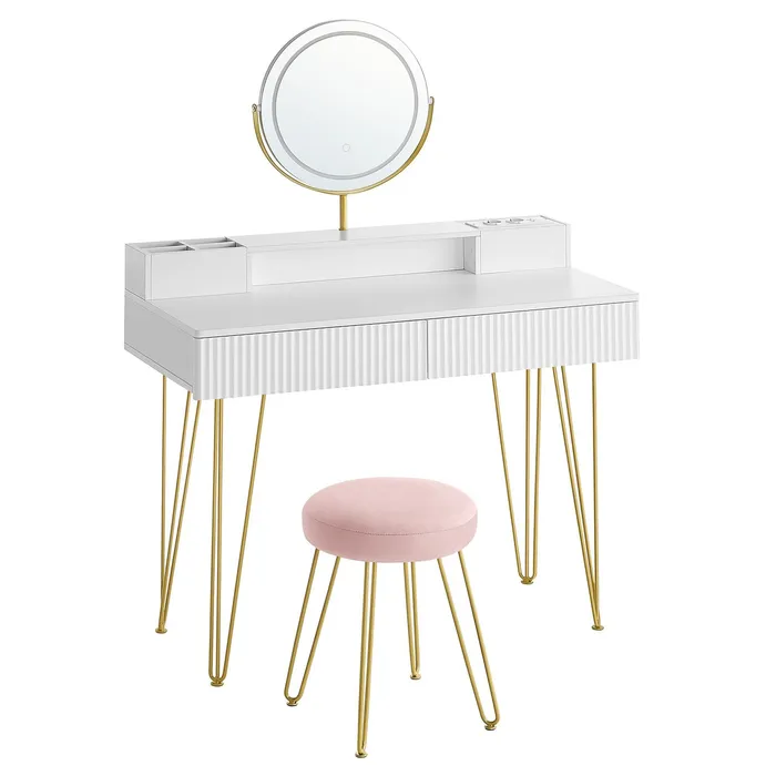 Плюковий столик із дзеркалом і рожевою табуреткою