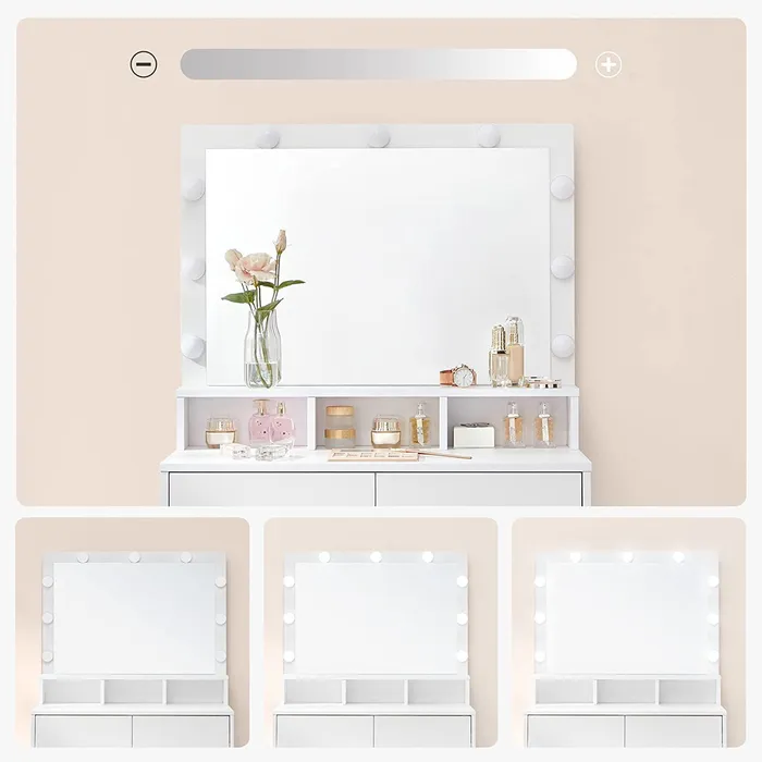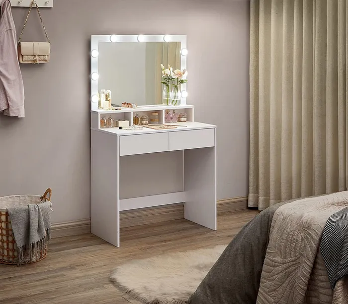 Плюковий столик із дзеркалом і світлодіодними лампочками 80 см гламур