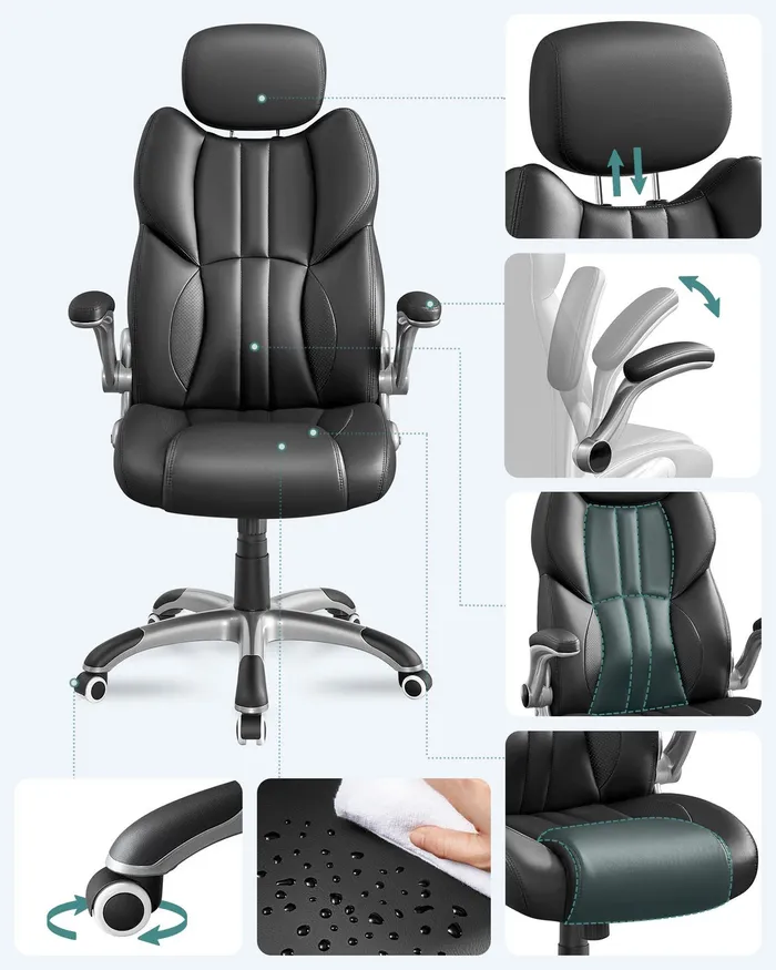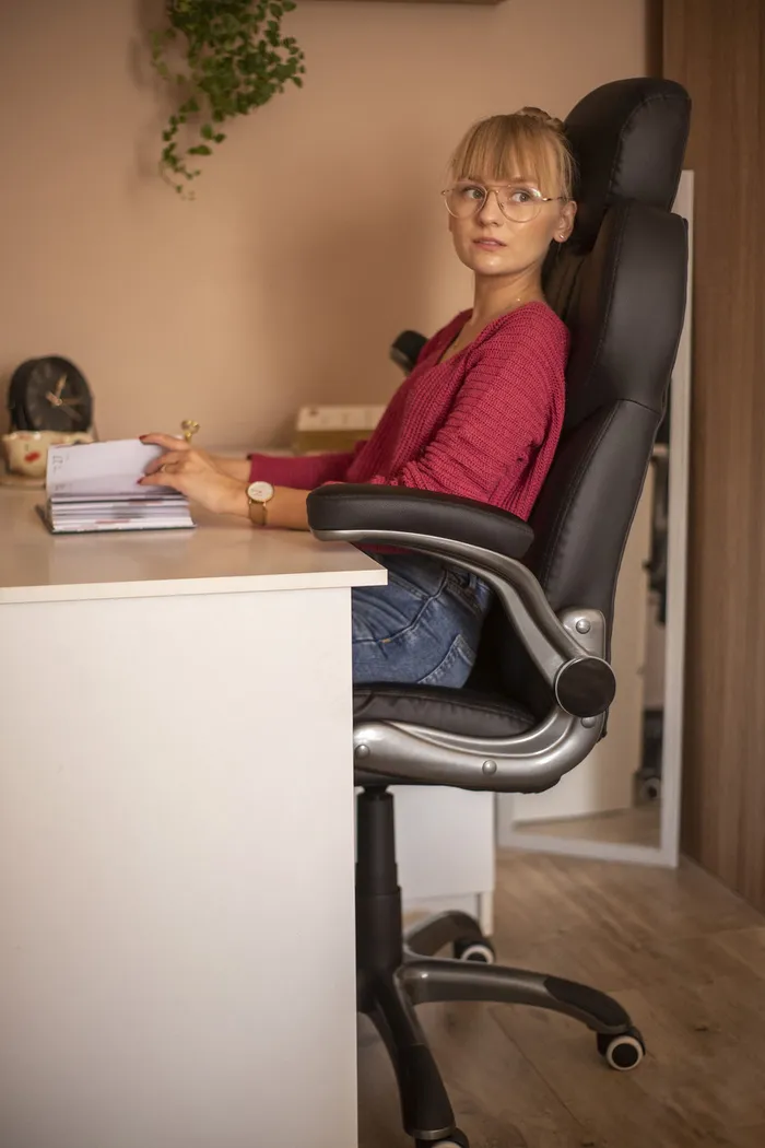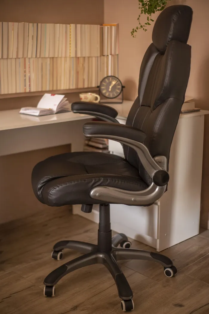 Поворотний офісний стілець Чорний Еко-Лізер Чорний