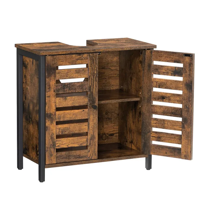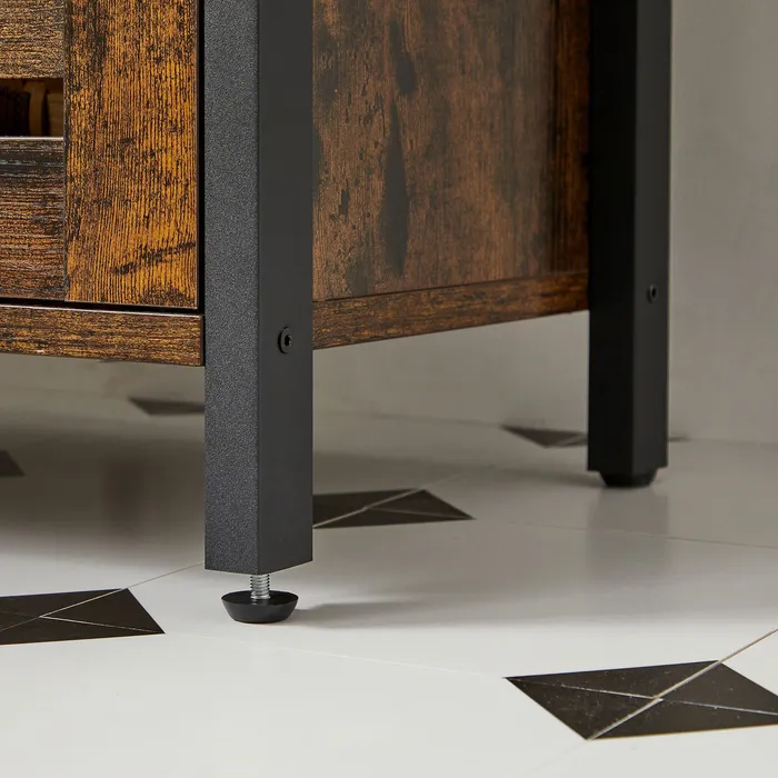 Тумба під раковину VASAGLE, шафа для ванної кімнати, 60 x 30 x 60 см сталевий каркас, шафа для зберігання, з 2 дверцятами, регульованими полицями, вінтажний коричневий та чорний