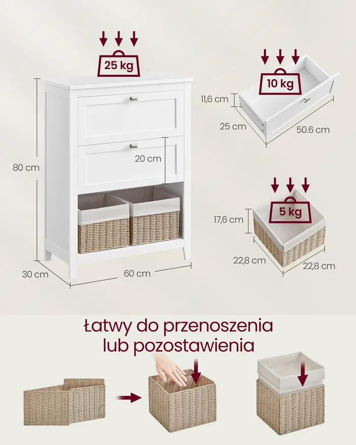 Шафа для ванної кімнати з 2 ящиками біла