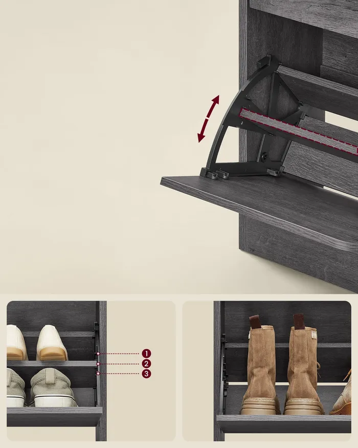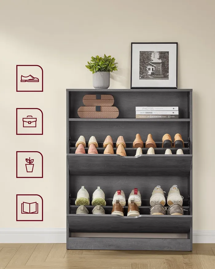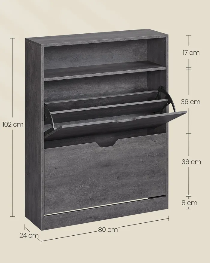 Сіра шафа для взуття з 2 дверима
