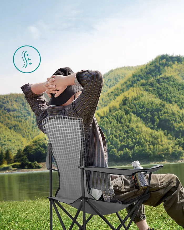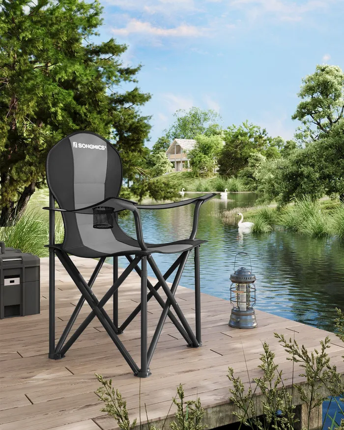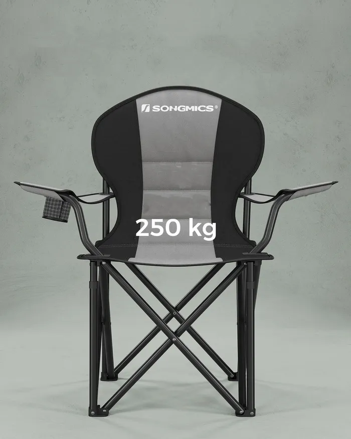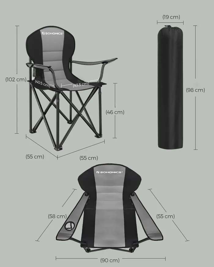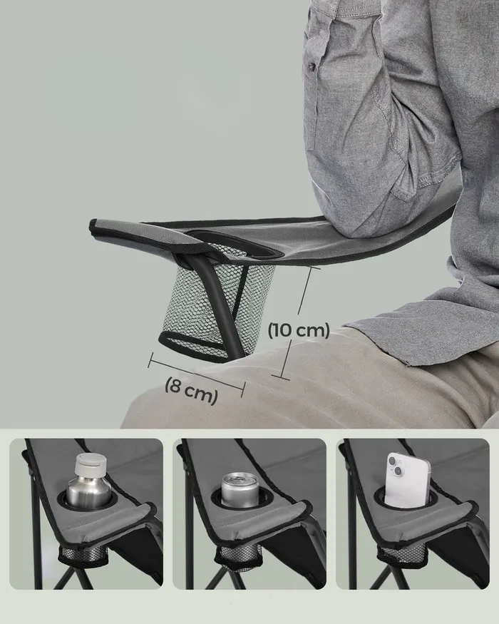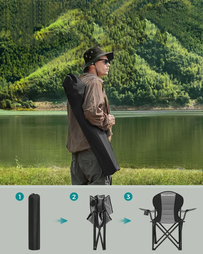Складання сіро-чорного туристичного стільця