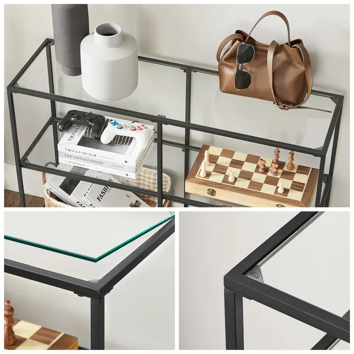 Скляна консоль 3 рівні великий чорний 100 см гламур