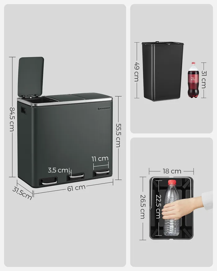 Сміттєвий кошик 3 камери x 18 L Антрацит сірий
