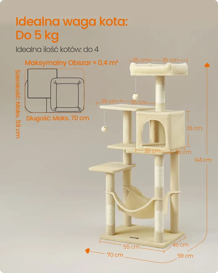 Стабільна котяча дряпає 143 см. Легкий бежевий