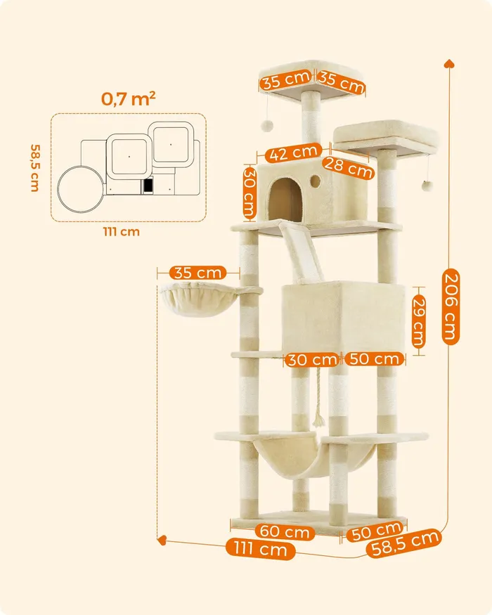 Суцільне котяче дерево бежеве 206 см