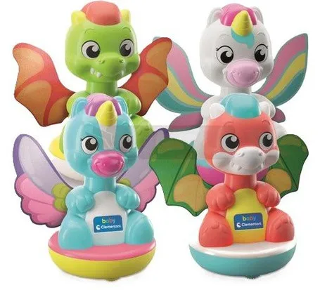 Дракон та єдиноріг перетворюються на дзиґи. Різнокольорові тканинні крила рухаються, коли ви натискаєте на іграшку.