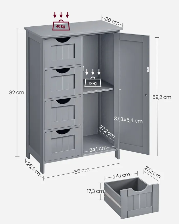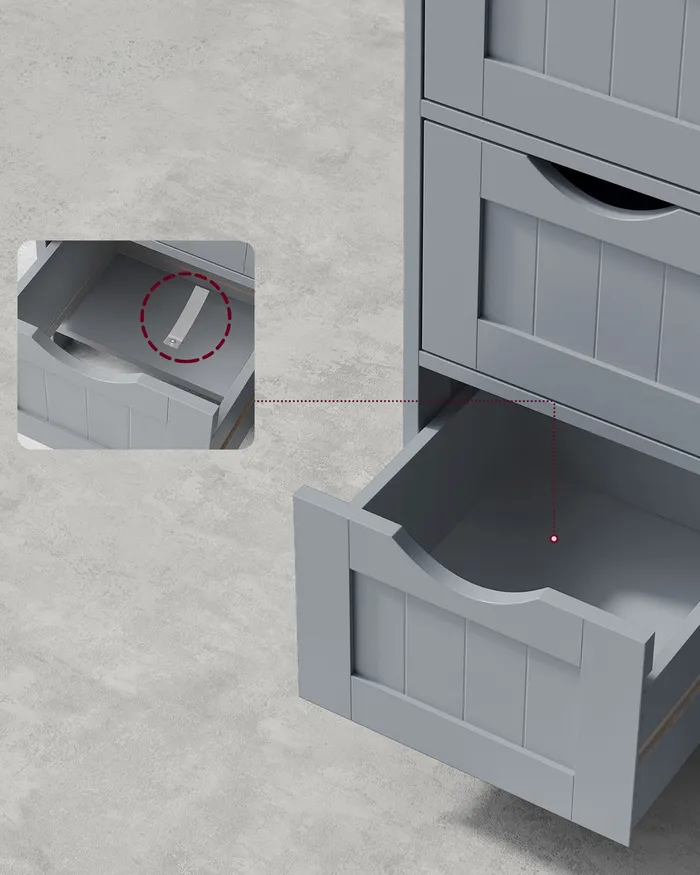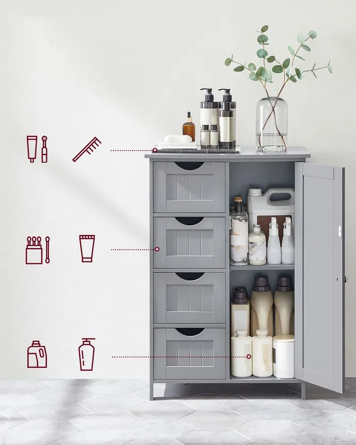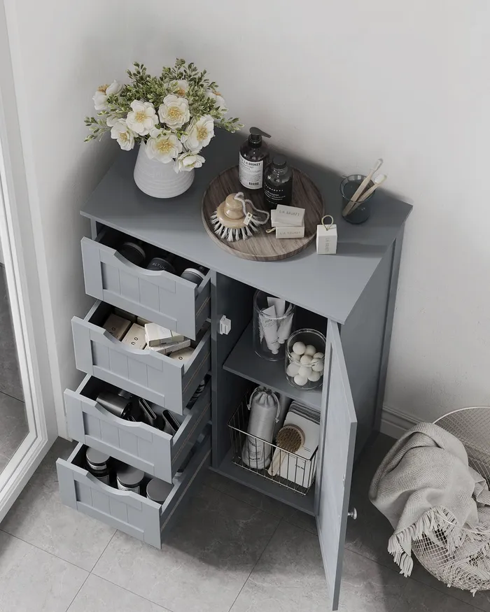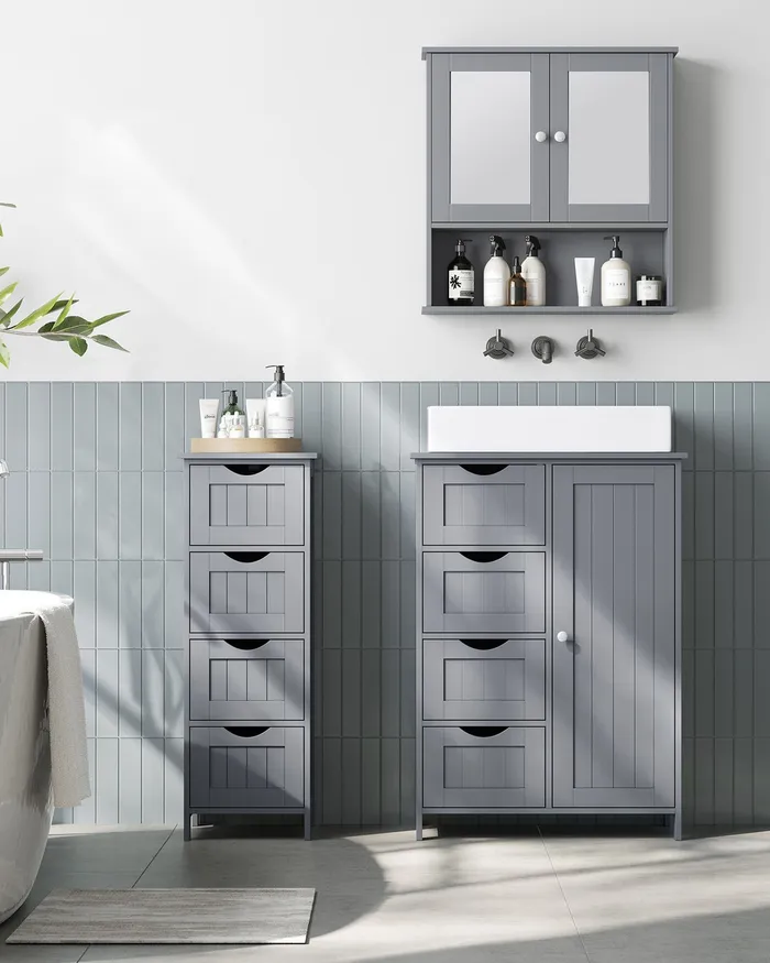 Світло-сіра шафа для ванної кімнати 4 ящики